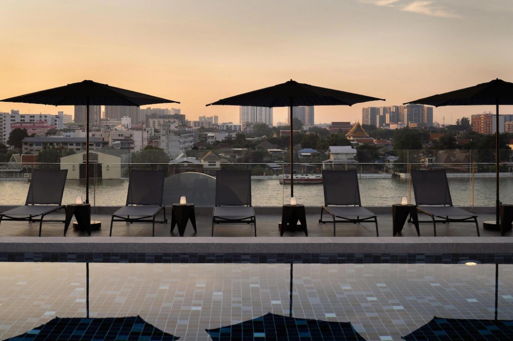2024年新登場,地點位於湄南路,正對 ICONSIAM 購物中心,旁邊就是 BTS 金線站。飯店設計簡約,房型舒適實用,部分能欣賞湄南河景。Hilton Garden Inn Bangkok Riverside館內設有餐廳、健身中心與 9 樓戶外泳池,可俯瞰曼谷全景。