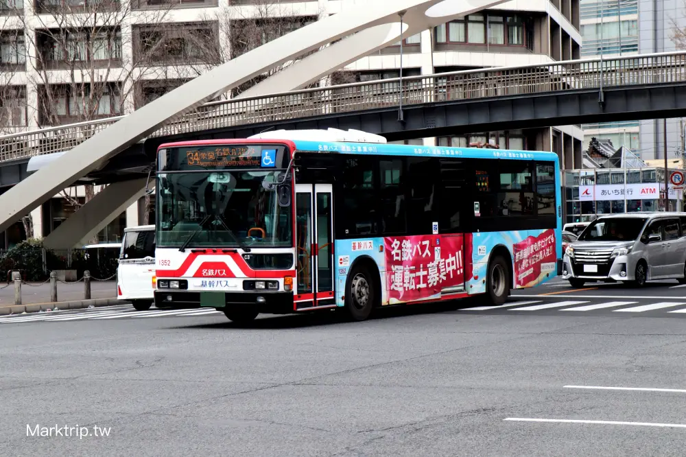 名鐵巴士也是從中部機場到名古屋市區的熱門交通方式,單程2000日圓,好處是可以直接前往名古屋站、榮、伏見等市區主要地點,沿途不用一直顧著行李箱。缺點是可能會遇到塞車,無法像電車一樣準時抵達。