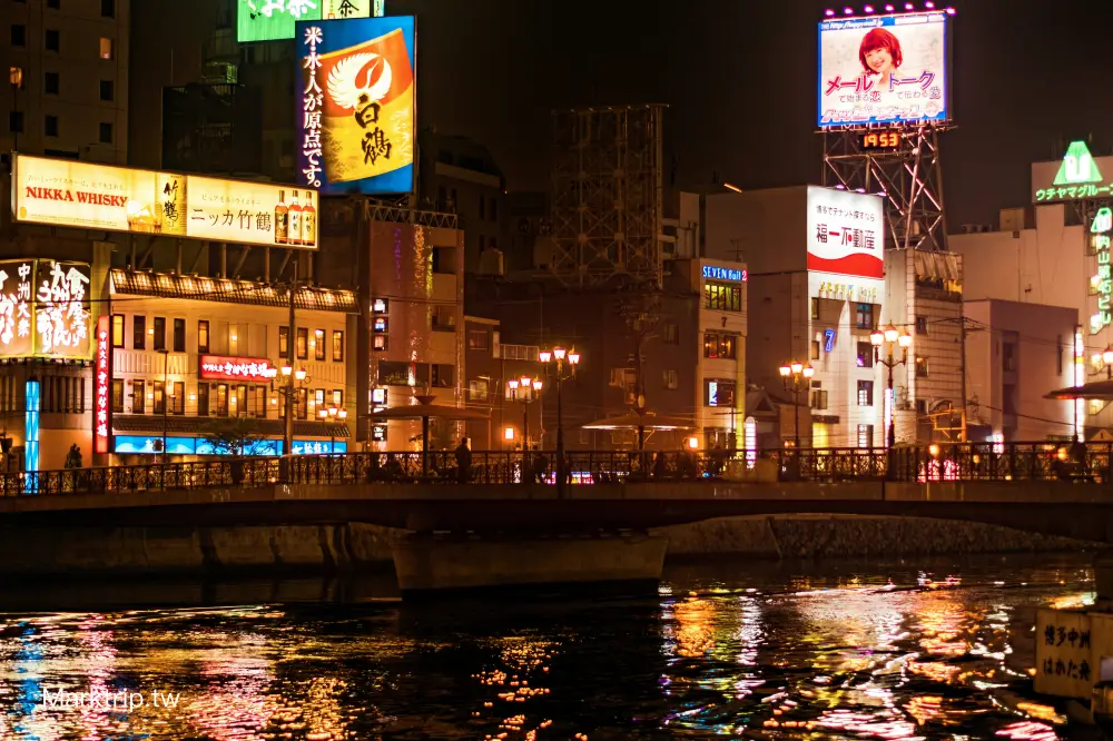 位於天神與博多中間,以河岸景觀和夜生活聞名。這裡聚集了許多新穎的風格飯店,晚上覓食極度方便,像是有名的一蘭拉麵總本店就在這裡,還有藥妝店、唐吉訶德可以逛。優點是景觀好、氛圍佳,缺點是靠近歡樂街的區域晚上環境會比較複雜一些,建議挑選在大馬路或河岸第一排的飯店。