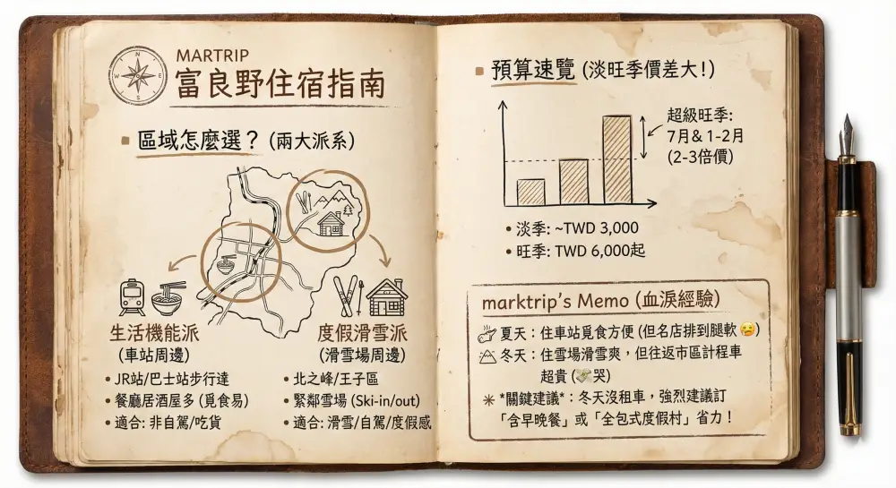 這篇攻略整理了富良野車站與滑雪場周邊共10間精選住宿,我會很直白地告訴你,哪間適合滑雪、哪間適合帶小孩,以及那些照片裡沒拍出來的真實「取捨」。