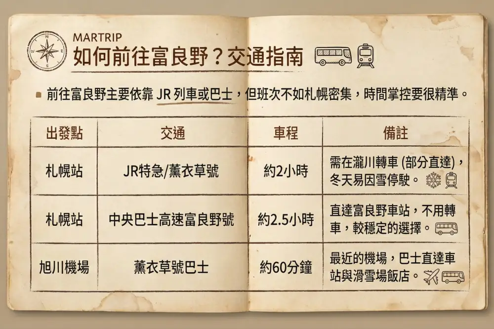 前往富良野主要依靠 JR 列車或巴士,但班次不如札幌密集,時間掌控要很精準。