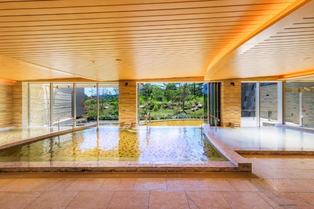 Hyatt Regency Hakone Resort and Spa位於強羅高地,是箱根地區最具代表性的高端溫泉度假村。飯店建築融合自然與現代設計,挑高大廳氣派、木質香氣撲鼻。每間房間都設有壁爐與陽台,部分能看到富士山與山林景觀。溫泉區分男女湯與家庭湯屋,泉水清澈柔滑;SPA療程也相當有口碑。餐廳提供西式與日式料理,早餐選擇極多。對親子旅客而言,凱悅最大的魅力在於服務體貼,連嬰兒澡盆與嬰兒床都能免費提供。