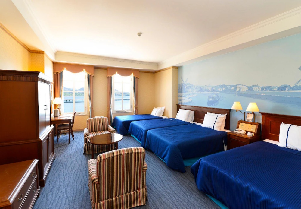 豪斯登堡日光飯店 (Hotel Nikko Huis Ten Bosch) 日航飯店雖然不像大倉那麼華麗,但它是公認的「高 CP 值」與「親子友善」首選。它擁有一個「房客專用通道」,可以直接通往園區側門,這對於帶著小孩隨時想回房換尿布、休息的爸媽來說非常方便。
