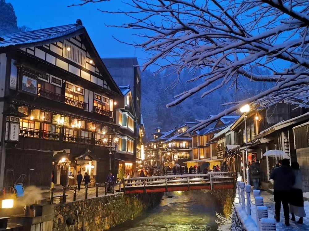 大正浪漫的極致代表,也是全日本最像童話世界的溫泉街。冬天的夜晚,厚厚的白雪覆蓋在古老的木造建築上,橘黃色的瓦斯燈亮起,美到像電腦繪圖,也被認為是《神隱少女》的場景原型之一。這裡的旅館大多是百年老舖,能夠體驗到最傳統的日式款待。