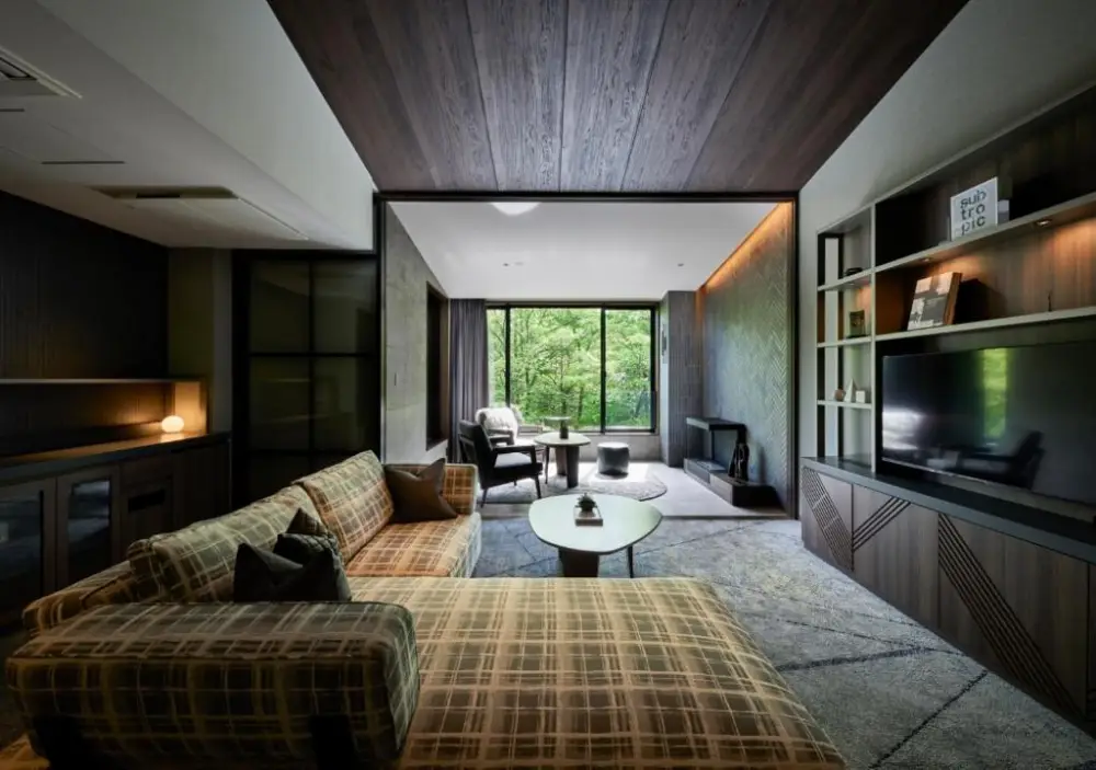 Fufu(馥府)系列向來是奢華的保證,這間「靜養之森」更是將輕井澤的靜謐發揮到極致。馥府 舊輕井澤 靜養之森 (Fufu Kyu-Karuizawa Seiyou No Mori)它位於舊輕井澤的森林深處,全館客房都配備了天然溫泉風呂,而且還有地暖,冬天赤腳走在房間裡超舒服。設計上運用了大量的胡桃木和黑色調,營造出一種沈穩、神秘的「大人隱居」感。
