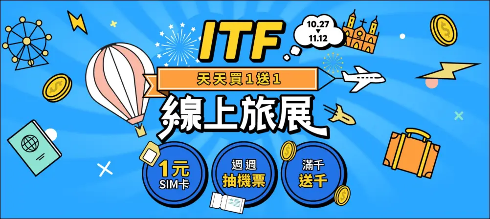 ✨ 10/27 – 11/12:11:00搶買一送一、12:00搶機票優惠、15:00 搶1元SIM卡