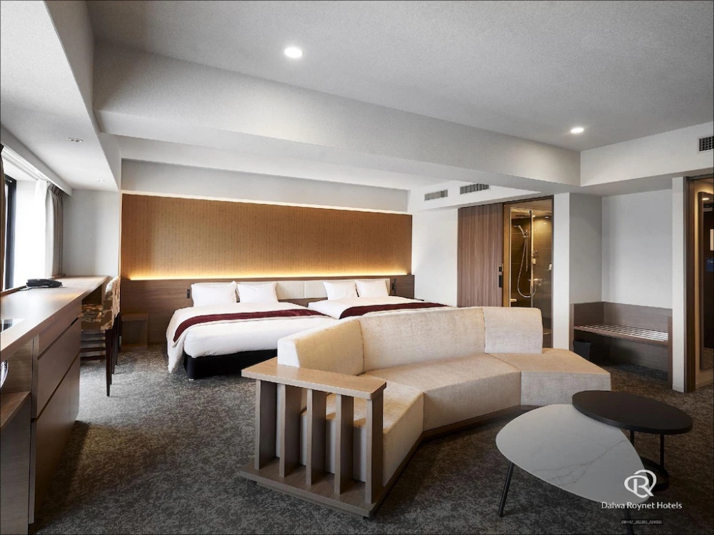 熊本銀座通大和魯內高級飯店 (Daiwa Roynet Hotel Kumamoto Ginzadori PREMIER) Daiwa Roynet 的「PREMIER」系列通常更寬敞高級。這間位於銀座通的房間大小在市區數一數二,部分房型甚至配有按摩椅,對每天走兩萬步的旅人是神器。位於鬧區邊緣,離下通很近但避開最吵雜區。浴室採乾濕分離,非常加分。如果你無法忍受行李箱打不開,或需要大桌面整理戰利品,這間絕對是首選,空間舒適度與價格完全正相關。
