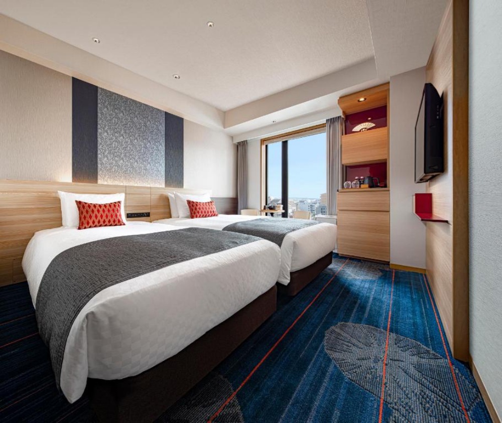 Royal Twin Hotel Kyoto Hachijoguchi 這間飯店走親切溫馨路線,位置在京都站南側,步行可到。館內設有大浴場,讓人能在旅程後泡湯放鬆。房型選擇多樣,從單人房到四人家庭房都有,空間設計實用,部分房內還有小沙發或閱讀角落。早餐提供西式與日式料理,對親子與家庭客人很友善。