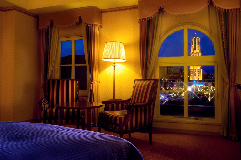 大倉最大的賣點是擁有豪斯登堡周邊唯一的「天然溫泉」大浴場,泉質呈現黃金色,玩了一整天後泡湯極度療癒。房間帶有濃厚的歐式宮廷風,窗外可以直接看到豪斯登堡的運河與風車景觀。早餐的法式吐司非常有名。如果你想要住得氣派、有溫泉可泡,且預算稍微充裕一點,選大倉絕對不會讓你失望。