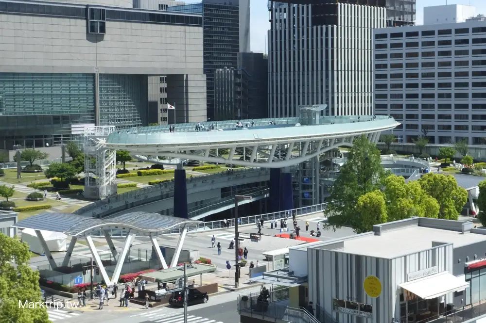 走上空中層後,可沿著周圍步道繞行一圈,腳下就是輕盈的玻璃結構與水池設計。這裡全年免費開放,即使是短暫經過,也推薦上來走一圈拍照取景,尤其夜色降臨後,會有不同色彩燈光變化,是名古屋夜景迷必朝聖的打卡熱點。