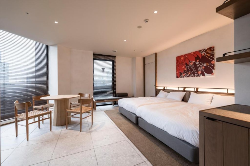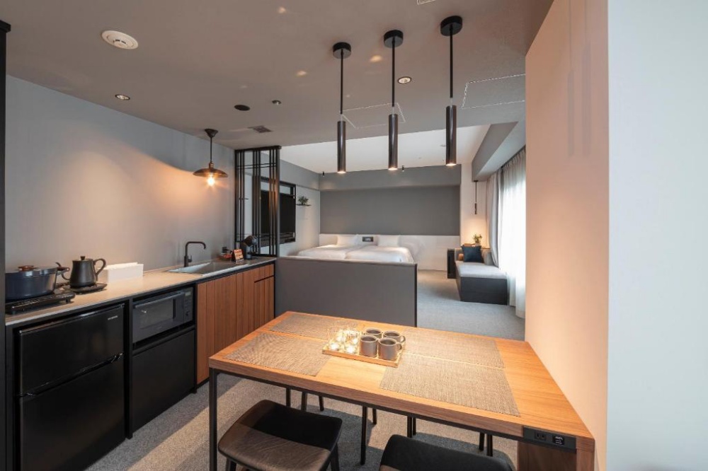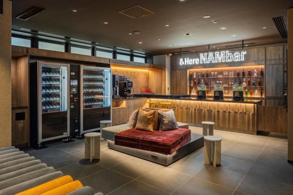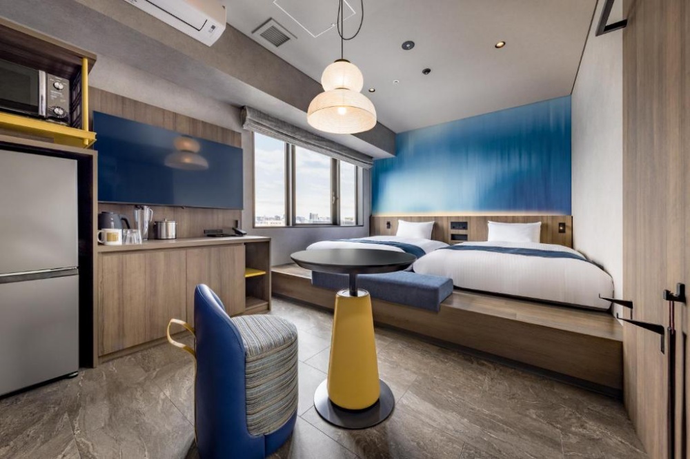距離南海難波站僅3分鐘的 & Here Osaka Namba,以現代工業風設計融合溫暖燈光,空間寬敞不壓迫。每間房皆設有小廚房、洗衣機與微波爐,讓長住旅人能享受如家般的便利。館內交誼廳氣氛輕鬆,牆上藝術裝飾呼應大阪活力。晚上窗邊的燈景特別漂亮,讓人捨不得睡。