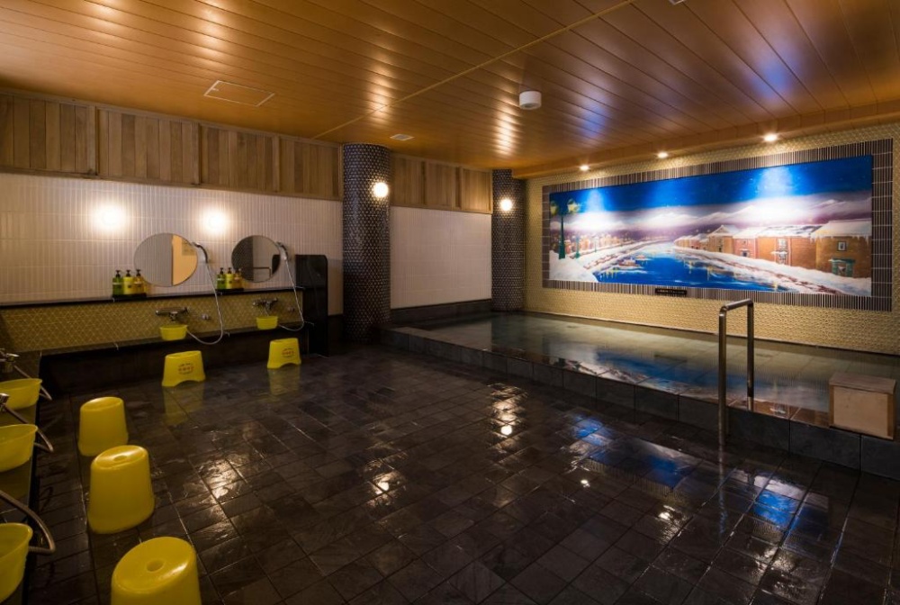 小樽運河托麗芙特飯店 (Hotel Torifito Otaru Canal)這是一間以「倉庫」為設計概念的飯店,雖然不是真的舊倉庫改建,但整體氛圍營造得很棒。位置就在運河區的靜巷內,鬧中取靜。大廳充滿了懷舊的小樽元素,還有一個很大的公共浴場,牆上畫著昔日小樽的風景。
