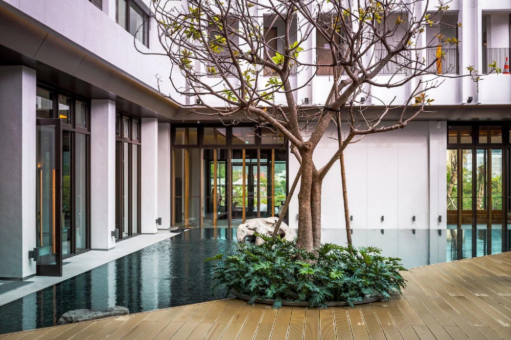 四重溪新開幕的長鈺溫泉飯店,以山林環境為背景,規劃多種湯池與日式風格客房。Samiling Resort房內設有獨立湯池,讓人能在私人空間中泡湯療癒。館內餐廳供應在地料理,結合養生與度假氛圍,是家庭與長輩的好去處。
