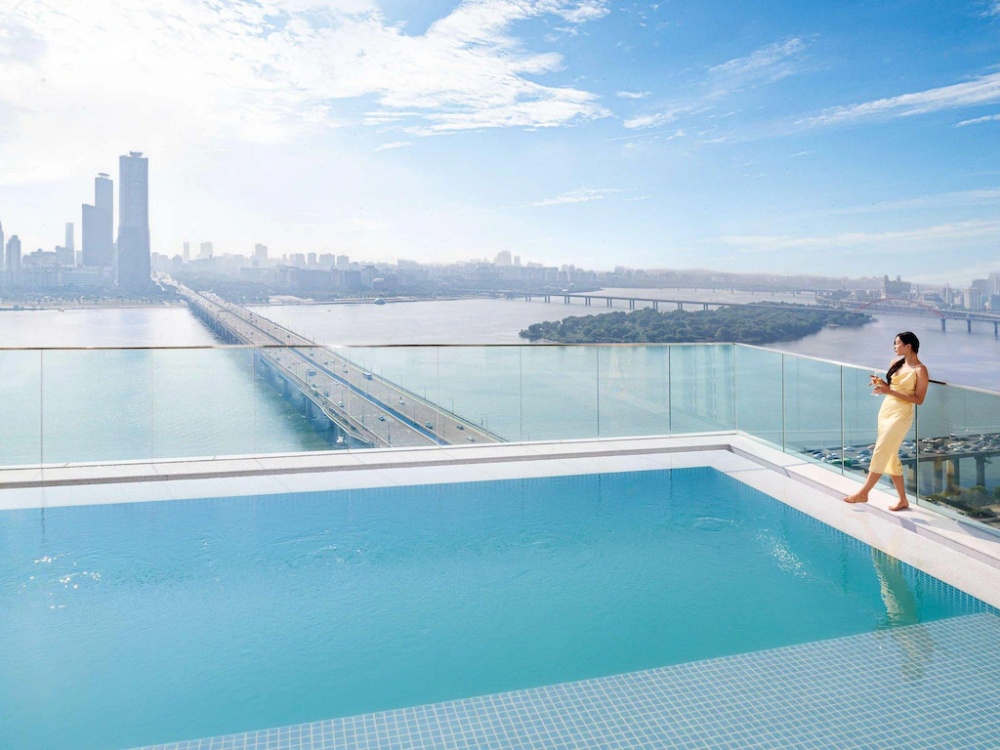 雅高集團旗下的 MGallery 系列,以藝術感與低調奢華聞名。位於漢江旁的 Naru,設計靈感來自流水元素,館內設有高空泳池與景觀餐廳。河景房是最大亮點,夜晚可欣賞漢江夜景。Naru Ambassador Hotel Seoul – MGallery Collection距離高尺天空巨蛋不遠,結合藝文與商務氛圍。