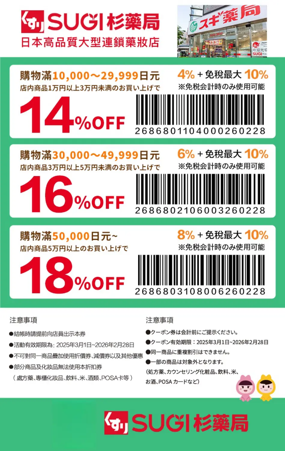 最新【スギ藥局優惠券2026】SUGI藥局藥妝免稅10%+8%Coupon下載!
